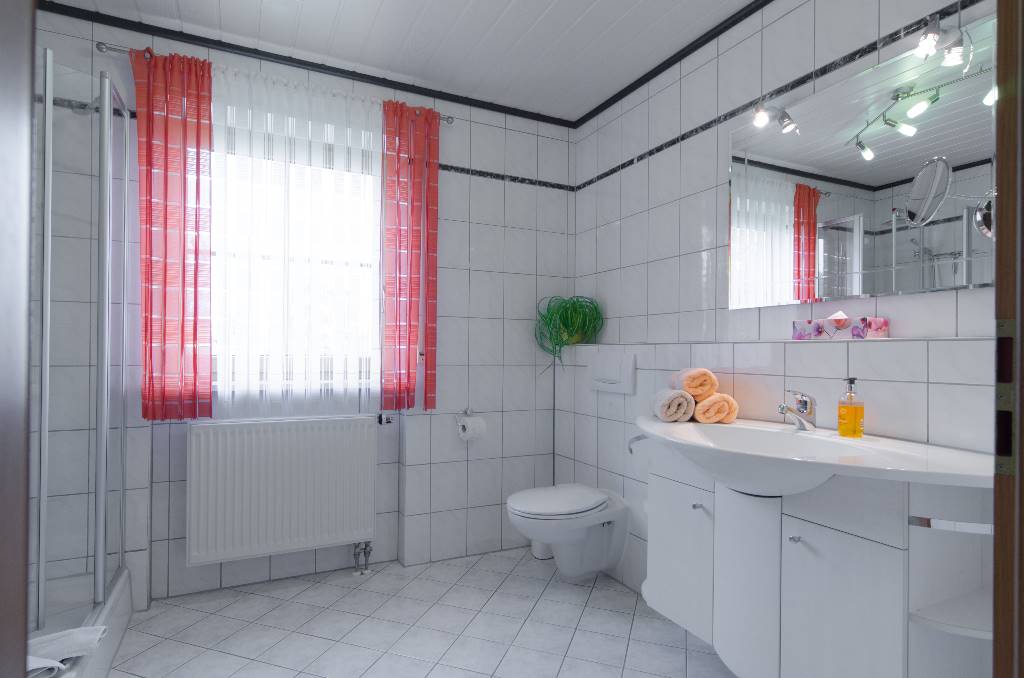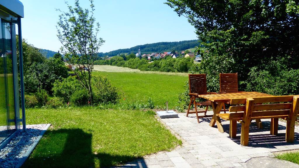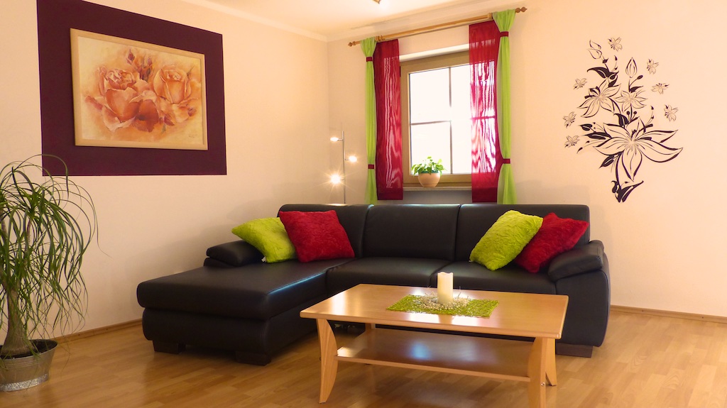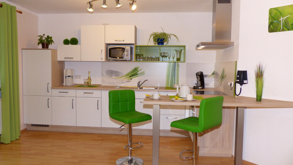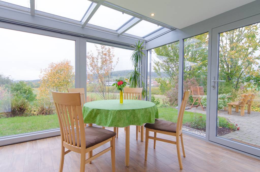 Die Ferienwohnung mit Wintergarten und Terrasse Fewo weiß besteht aus einem Schlafzimmer, einem Bad mit Dusche und WC, aus einem großzügigen Wohnraum mit Eßecke, einer gemütlichen Bettcouch mit Lattenrost und einer komplett eingerichteten Küche mit Kaffeemaschine ,Toaster, Mikrowelle, Wasser
