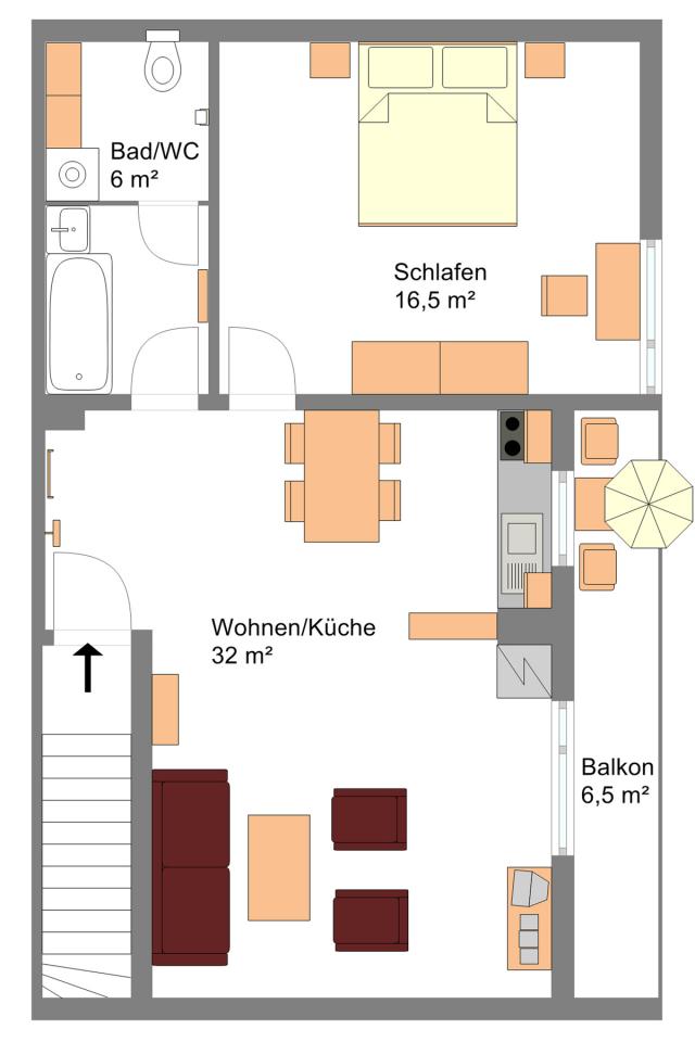 1 Schlafzimmer 1 Doppelbett 1 Schlafsofa