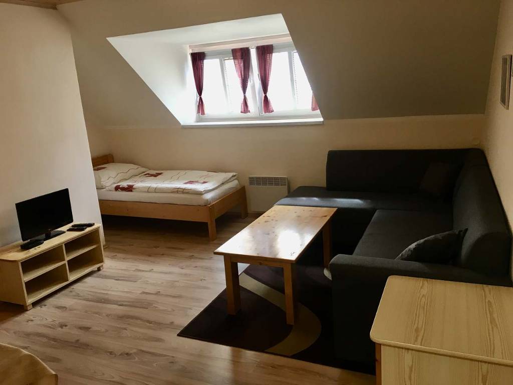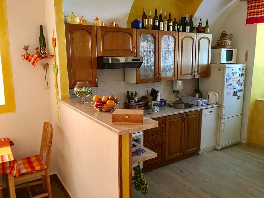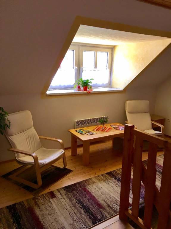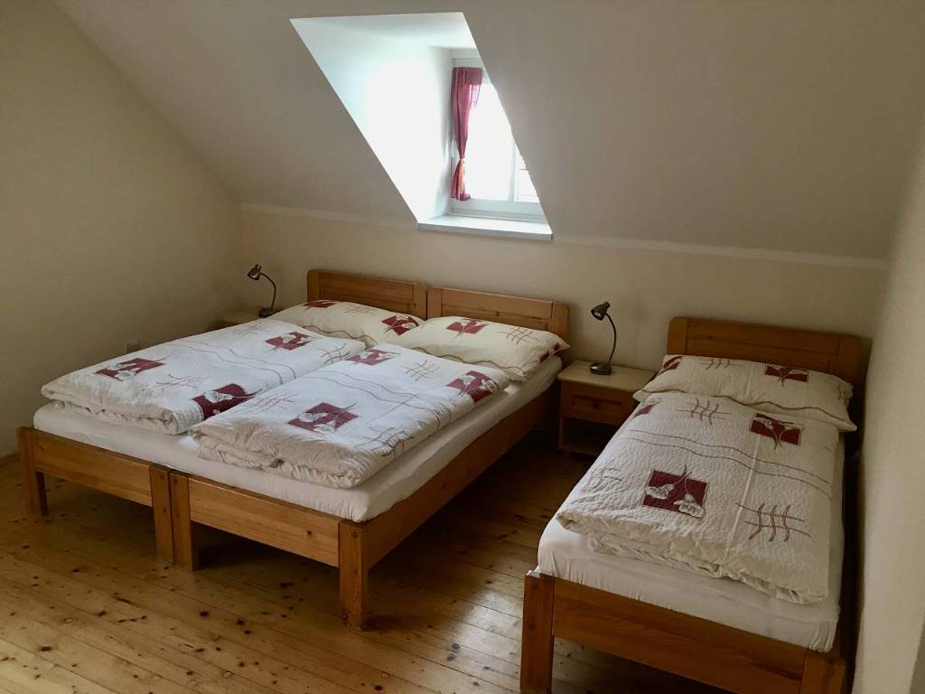 Familienhaus für 16 Personen in 5 Schlafzimmern mit zwei Wohnungen A+B + einem extra Doppelzimmer Wohnung A im Erdgeschoss (max. 6 Personen + 1 Zustellbett) Wohnung B im Dachgeschoss (max. 6 Personen + 1 Zustellbett) extra Doppelzimmer mit eigenem Bad. Das Haus verfügt über einen großzügige