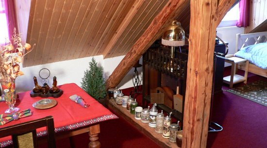 Die Suite befindet sich in dem Dachboden der Pension und sieht wirklich gemütlich und grandios aus. Sie bietet Ihnen einen wunderschönen Blick in die drei Weltgegenden und ist mit altertümlicher Seele möbliert. Der alte Staubsauger ist einfach Unikat und zusammen mit den alten Plattenspieler unterdruckt die Atmosphäre der Suite. Dieses Zimmer bewohnen oft junge Eheleute oder Gäste, die ihr Urlaub im großen Stil genießen wollen. Die Suite ist mit Dusche, WC, Fernseher, Radio und Föhn ausgestattet.