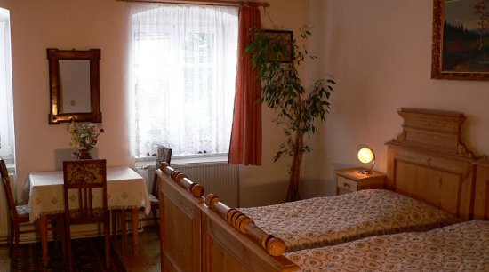 Das Zimmer „Weidliche Senioren“ ist mit wunderbares geschnitztes Möbel eingerichtet und bietet Ihnen einen Blick auf den kleinen Garten. Es befindet sich im Erdgeschoss und wir empfehlen es für ein reifes Paar oder für eine Dreiergruppe. Modernes Badzimmer mit WC befindet sich auf dem Hausflur.