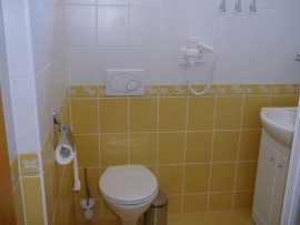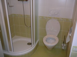 Jedes Appartement ist mit eigenem Bad mit einer Dusche, Waschbecken, Toilette, beheiztem Boden, Handtücher und Haartrockner ausgestattet.