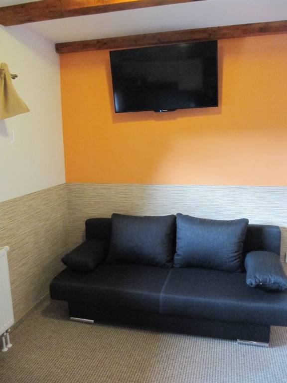 Im Wohnraum befindet sich eine ausziehbare Couch, die ein vollwertiges Doppelbett ist. Weiter können Sie den LCD-Fernseher mit eigener SAT-Anlage, Tresor und Internet-Anschluss nutzen. Innerhalb Ihres Aufenthaltes können Sie bequem Ihre E-Post kontrollieren oder im Internet surfen.