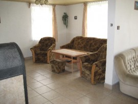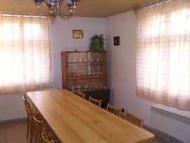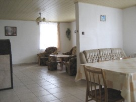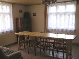 Schön eingerichtetes 4-Zimmer-Ferienhaus (100 qm) für 8 Personen in einem grossen eingezäunten Garten (3000 qm) am Rande des Ortes. Eingang über die Terrasse. Flur. Wohnraum (40 qm) ist mit Sitzgarnitur, Essecke, Kaminofen und TV+SAT ausgestattet. In der Küche (10 qm) stehen Elektroherd (4 Koch
