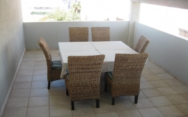 Schöne große Luxus-Wohnung nur 60 Meter vom Strand entfernt. Ferienwohnung hat 2 Schlafzimmer, 2 Bäder, 2 große Terrassen, großes Wohnzimmer, ein Billardtisch, eine große Küche mit Meerblick, Esszimmer, Klimaanlage, WiFi, private Parkplätze, einen Jacuzzi im Garten.
