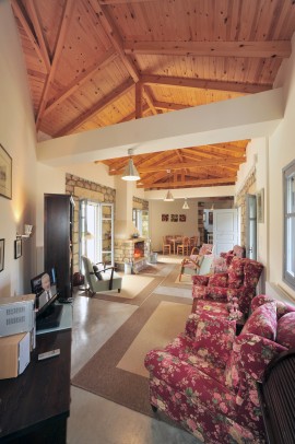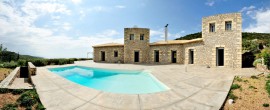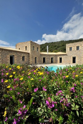 Die sehr großzügig angelegte Natursteinvilla liegt in der unberührten Natur der äußeren Mani und überblickt die südliche Küste bis hin zur lakonischen Halbinsel Tighani. Über die gut ausgebaute Küstenstrasse erfolgt die Fahrt von Kalamata kommend hinunter Richtung Süden. In einem grü