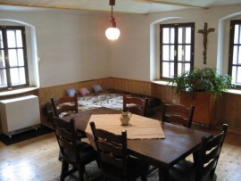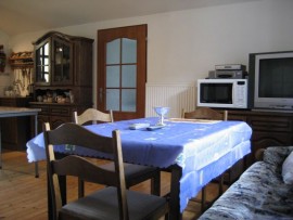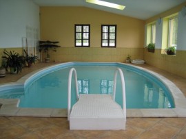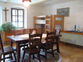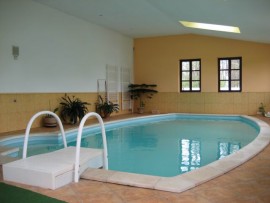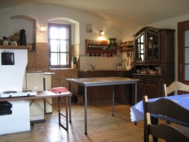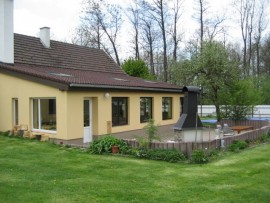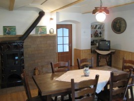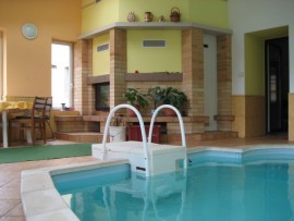 (20 qm) stehen zur Verfügung: el. Kocher (2-Kochplatten), 2 Küchlschränke (einer mit Tiefkühlbox), Mikrowelle, Wasserkocher, Herd für Brennstoffe, Ofen, TV+SAT, Essecke und 1 Einzelbett. Im Haus steht nur Gebrauchwasser zur Verfügung. Trinkwasser besorgt der Vermieter nach Absprache mit Kunden. Bad mit Eckwanne und WC – Boiler 80 l. Vom Flur ist Eingang zum Raum mit einem groβen inneren Pool (8 x 4 x 1,2 m). Innerer Pool ist mit Gegenstromanlage und ist beheizt (elektrisch, bzw. mit Kaminholz). Um den Pool ist Bodenheizung installiert. Beim Pool stehen Sitzmöglichkeit und Kamin zur Verfügung. El. Heizung, bzw. Kaminholz. Rauchen ist nur beim Pool erlaubt. Vom Pool ist Zugang zur Terrasse mit Aussensitzmöglichkeit und Gartenkamin. Im groβen eingezäunten Garten (1240 qm) stehen weiter Tischtennis, Feuerstelle und Sandkasten zur Verfügung. Eingezäunte PKW-Abstellplätze.