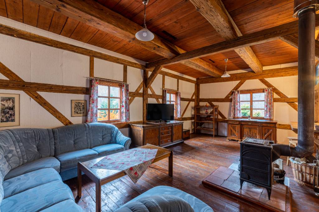 Komplett und luxuriös rekonstruierte ehemalige Scheune in unmittelbarer Nähe (50m) der Pension Na Belidle in der Tschechischen Schweiz. Die ganze Scheune war sehr sorgfältig rekonstruiert in 2013/2014 mit maximaler Rücksicht auf originale Elemente mit der Benützung von historischen Baumaterial