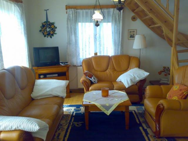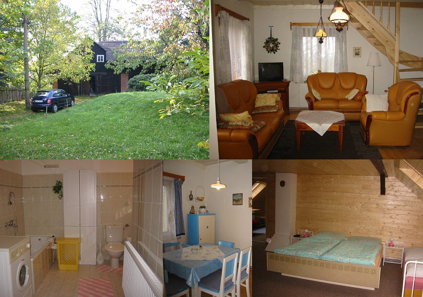 Ferienhaus für 6 Personen + 2 Kinder. Wohnzimmer mit Kamin, Küche mit Spülmaschine und Herd. Schlafzimmer 1x2 + 2 Kinder, 1x2, 1x2 (Schlafzimmer sind durchgänglich). Badezimmer: das erste mit Dusche und Waschmaschine, das zweite mit Badewanne. WC, Waschbecken. Terrasse mit Sitzgelegenheiten und