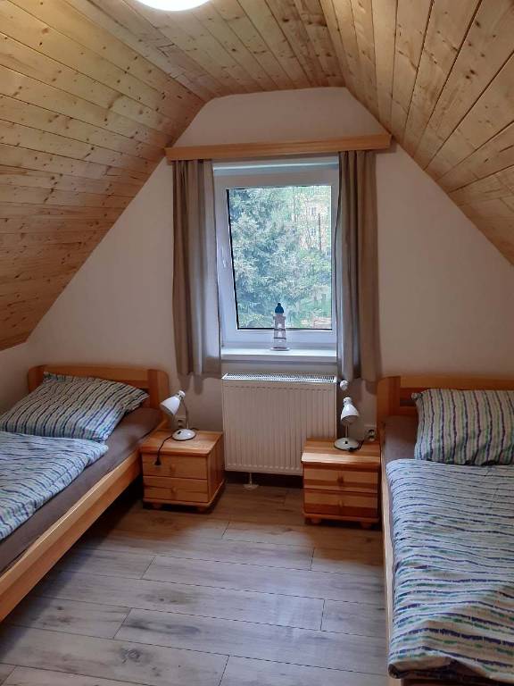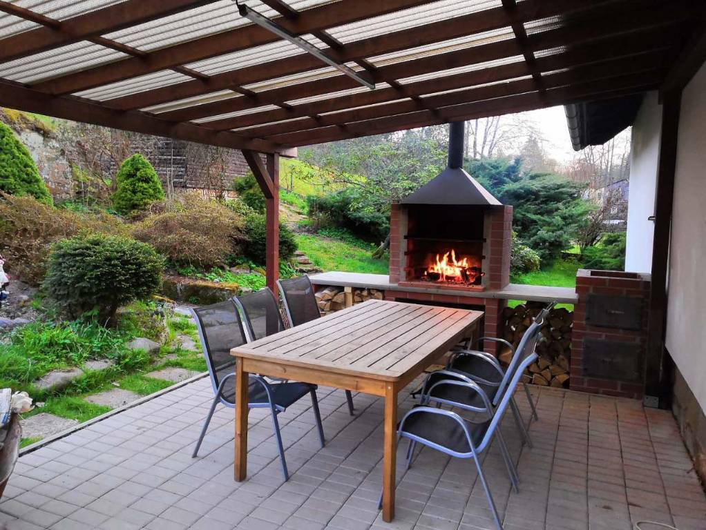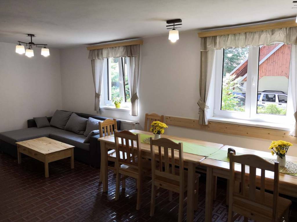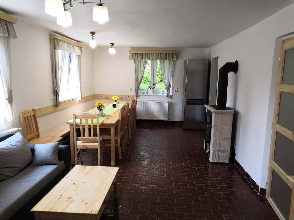 Geräumiges, neu renoviertes Ferienhaus mit SAUNA für 13 Personen in 4 Schlafzimmern in ruhiger Lage in der Gemeinde Jetrichovice in der Nähe eines Baches. Attraktive Wander- und Radwege in der Nähe. In der Umgebung können Sie angeln, einen Klettersteig besteigen, reiten oder einen Golfplatz bes