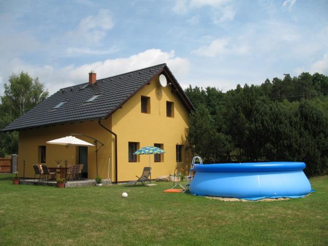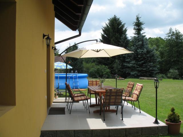 Neu und modern eingerichtetes Ferienhaus mit Aussenpool und Terrasse. Lage an der Grenze zwischen der Böhmischen Schweiz und dem Tschechischen Mittelgebirge. Das Haus verfügt über 2 Stockwerken. Im Erdgeschoss gibt es ein Wohnzimmer mit Esstisch und Ausgang auf die teilweise Bedeckte Terrass