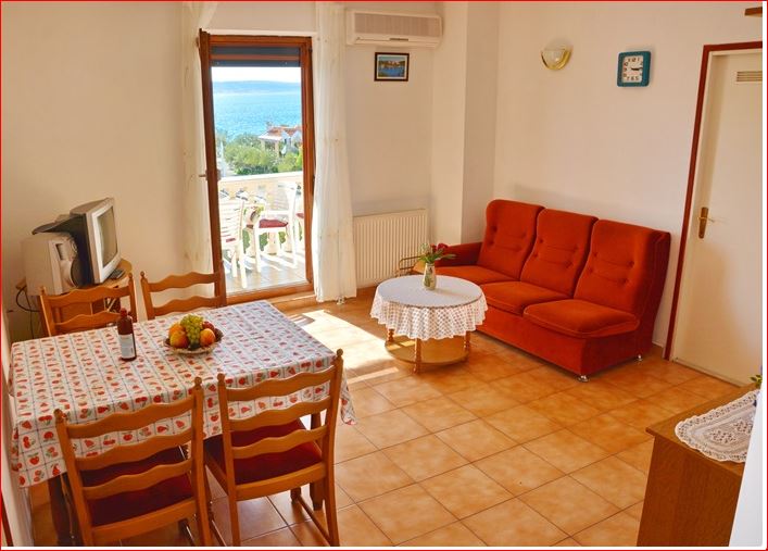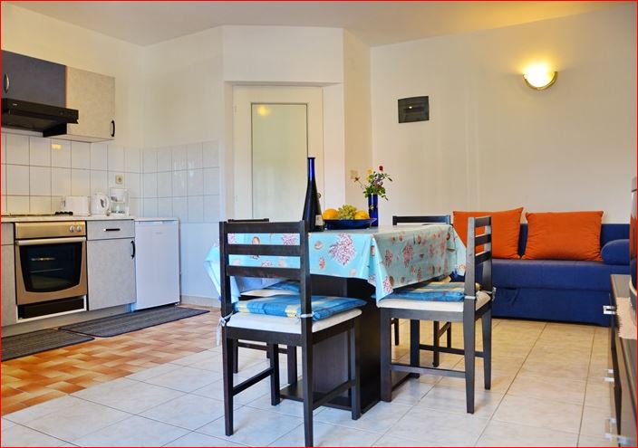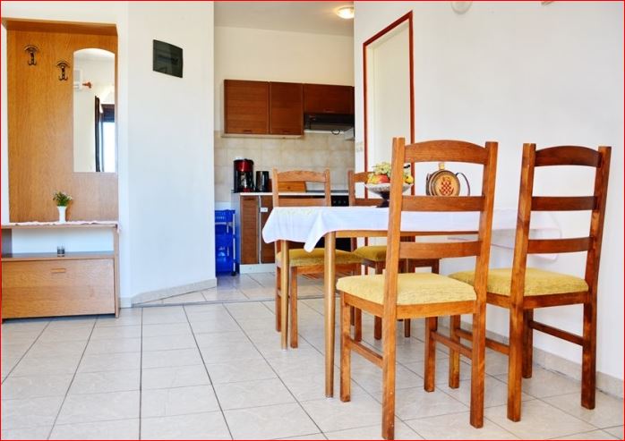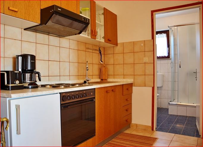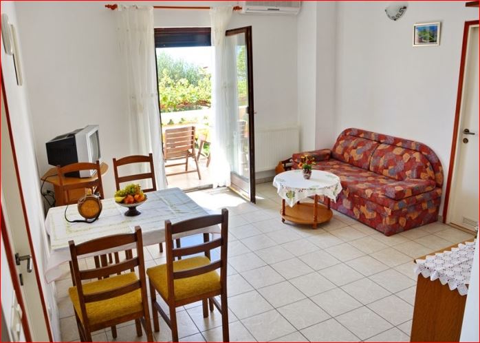 Angebot Ferienwohnungen Unterkunftsart: FE - WO in Fünffamilienhaus, 50 m Strandentfernung, Ambulanz - 500 m, Geschäft - 500 m, Bank - 2 km, Post - 2 km. Ausenbereich: Parkplatz, Boot anl. Platz, Garten, Grill, Gartenmöbel. Ausstattung: Schlafzimmer mit Doppelbett, Schlafcouch in Wohnzimmer