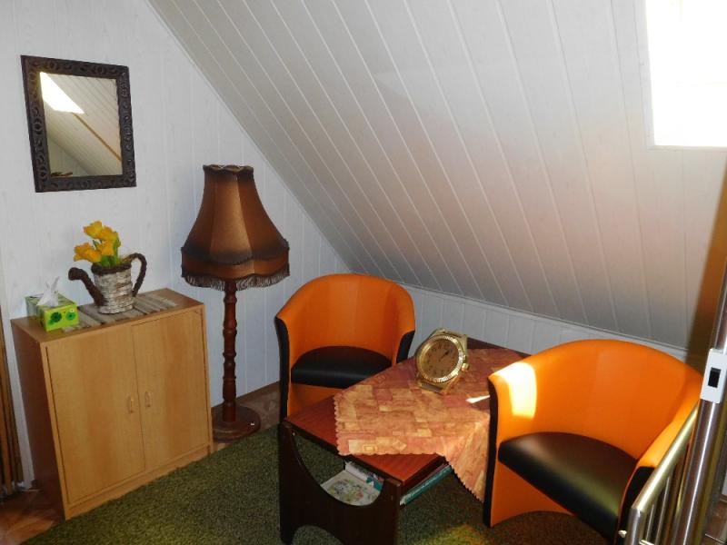 Das FerienHaus ist umgeben von einem 260 qm großen Grundstück. Zur Nutzung stehen zur Verfügung: Gartenmöbel. Kamin und überdachte Sitzecke. Beschreibung: 2 Etagen, 3 Zimmer (davon 2 Schlafzimmer), 55 qm, 6 Betten (für 6 Erwachsene). Doppelhaushälfte mit separatem Eingang. Erdgeschoss: