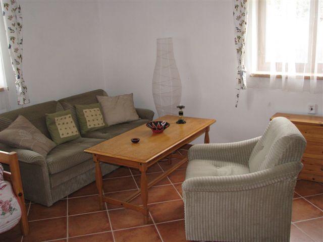 Geräumiges und schön eingerichtetes Ferienhaus im Böhmerwald. Im Haus steht zur Verfügung ein Gemeinschaftraum, teilweise überdachte Terrasse, Vorraum, Schlafzimmer (1x DB, 1x Kinderbett - nach Absprache, 1x Schlafsofa), Wohnzimmer mit Küchenecke, WC, Wohn/Schlafzimmer (3x EB + 1x Schlafsofa