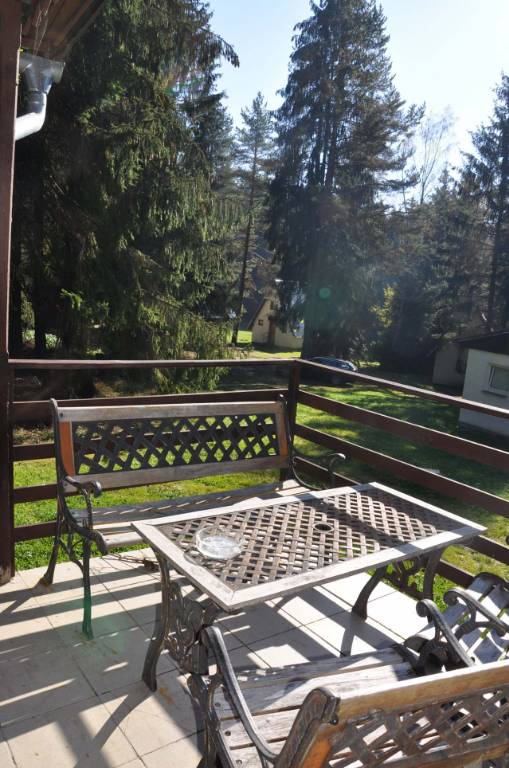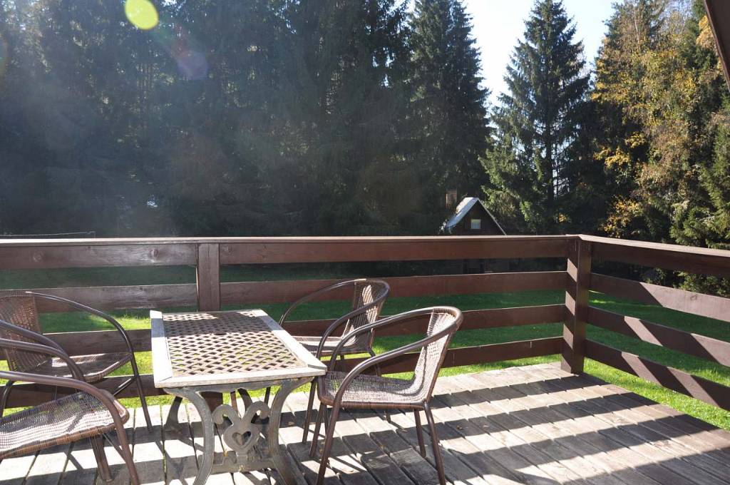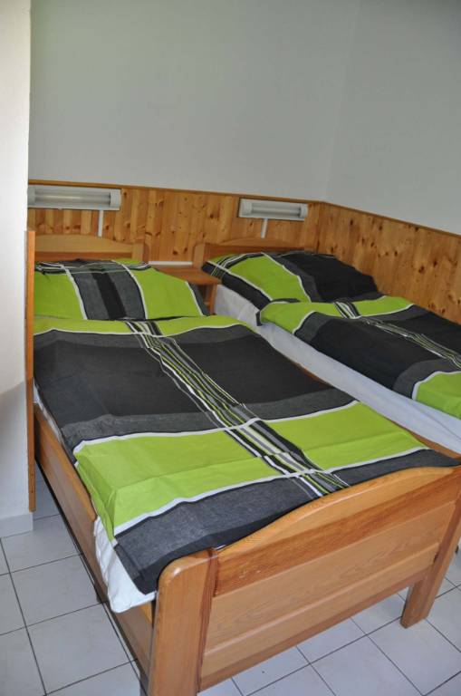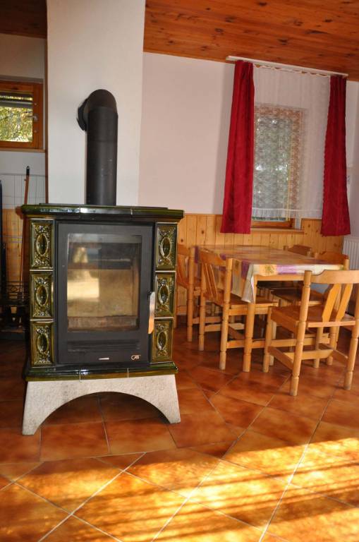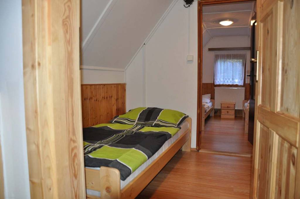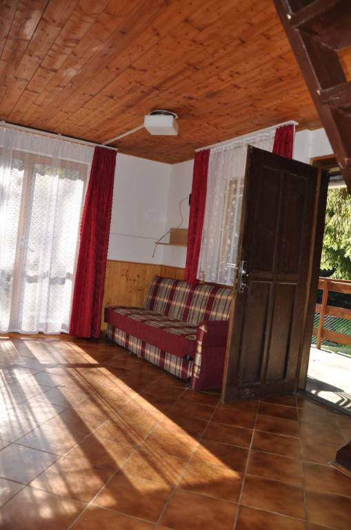 1x Hütte Koudelka mit zwei Doppelzimmern im ersten Stock und einem Zustellbett in Form eines Sofas im Wohnzimmer,