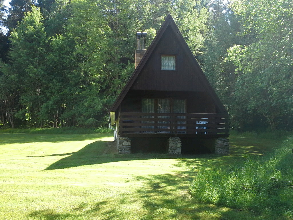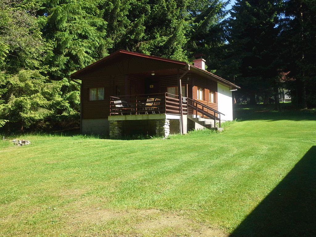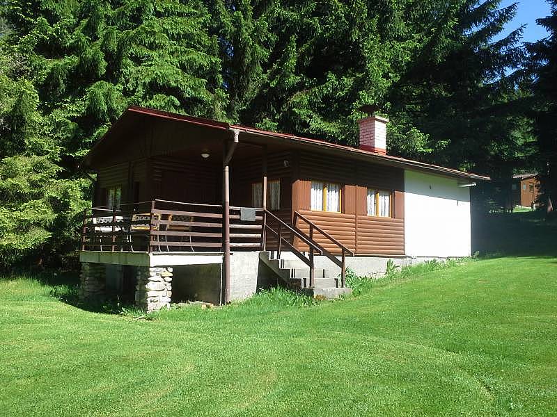 5x einstöckige Hütte Šumavanka mit zwei Doppelzimmern und einem Zustellbett in Form eines Sofas im Wohnzimmer