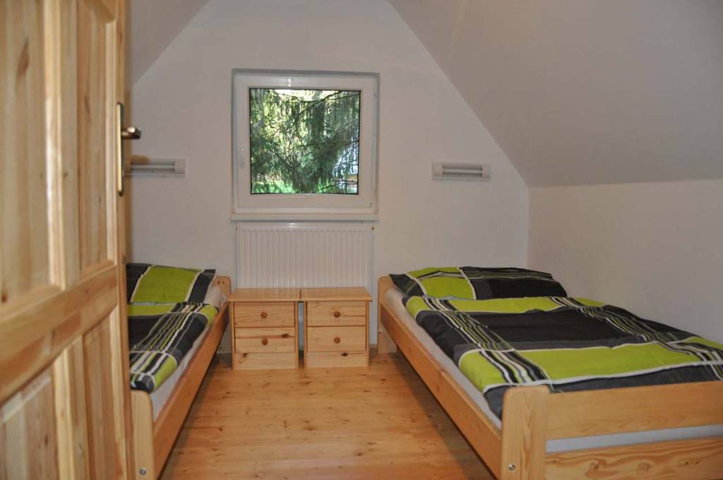 3x Hütte Tereza mit zwei 2-Bett-Schlafzimmern im ersten Stock und einem Zustellbett in Form eines Sofas im Wohnzimmer