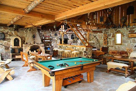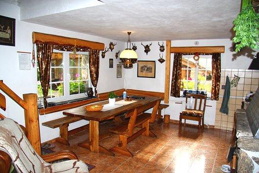 Große ausgestattete Küche (Gasherd mit Backofen, Kühlschrank) mit Kamin, DVD, Radio und Essbereich, großer stilvoller Aufenthaltsraum mit Bar und Schank, Kühlschrank, Kamin, Billard, Darts, Tischtennis und Tischfussball, TV+SAT, CD