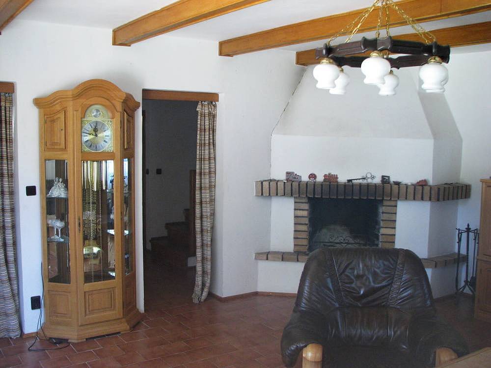 Wohnzimmer mit Kamin, TV + SAT und Video, Hauskino,