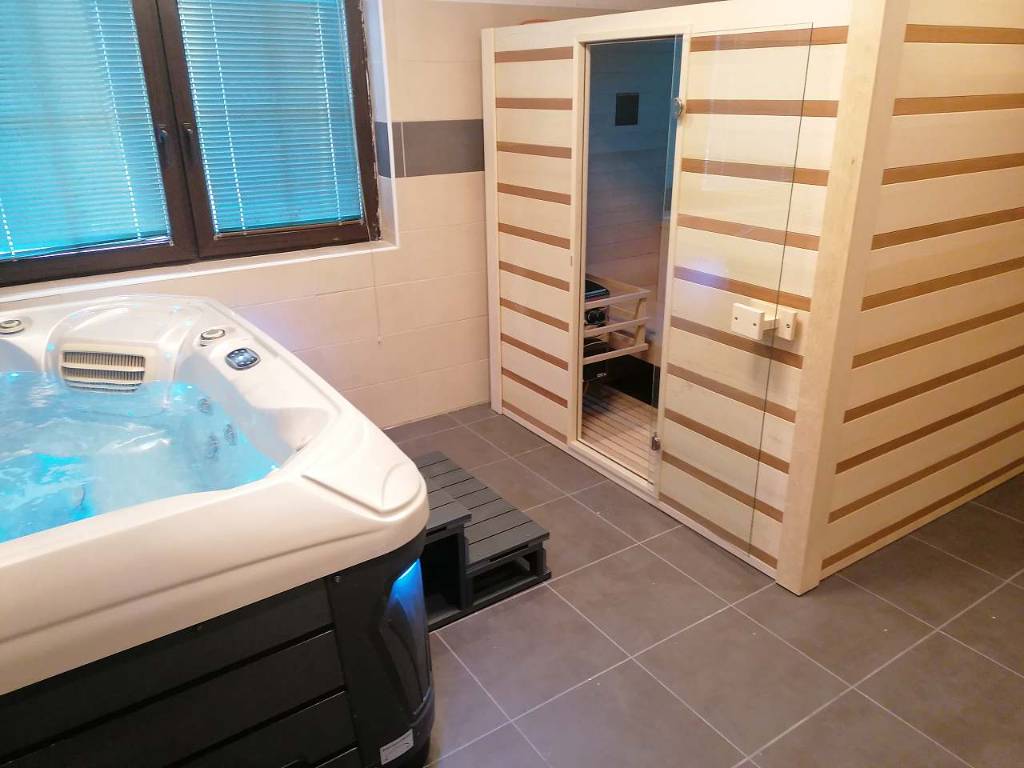 6 Schlafzimmer (6/2 + 2 Aufbettungen), 1x Bad mit Dusche und WC, 1x Badezimmer mit Whirlpool-Badewanne, 2x separates WC, Sauna für 5 Personen, Tischtennis, Fahhradtrainer, kombinierte Heizung (Gas + Fußbodenheizung).