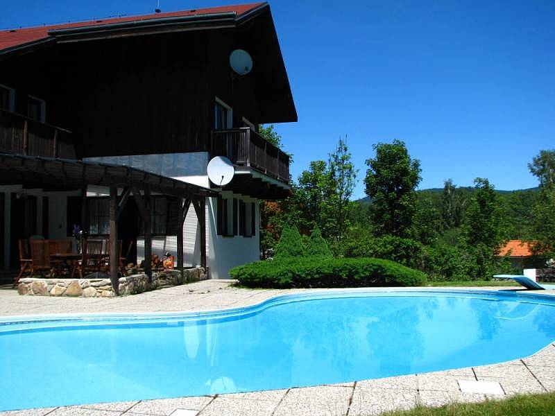 Großes, luxuriöses Ferienhaus mit einem großen Aussenpool, Whirlpool und Sauna, 500 m von Lipno-Stausee, 8 km von Horni Plana im Böhmerwald.