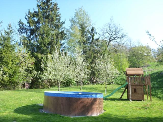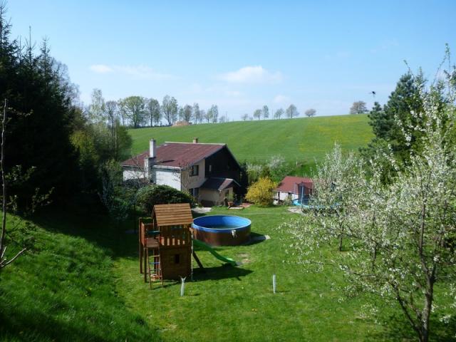 Großzügiges Ferienhaus mit Außenpool im umzäunten Garten, in der Nähe des Dorfes Steinbau, Lebensraum und Gemeinden Mittagessen fahren wir Nedvězí, im Landkreis Šumperk entfernt. Das Objekt in einer Einöde in den Ausläufern. In der Hütte Wälder und Wiesen unbeaufsichtigten Fahrzeug -