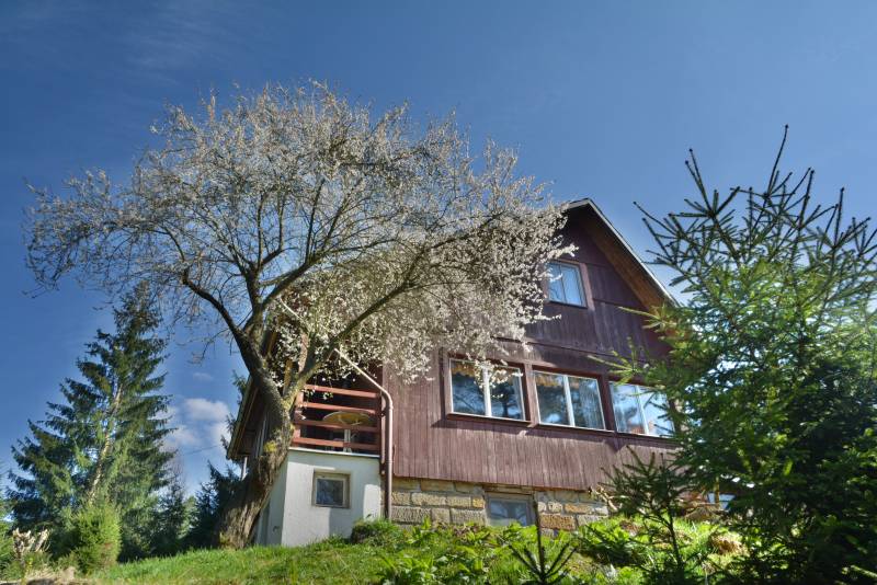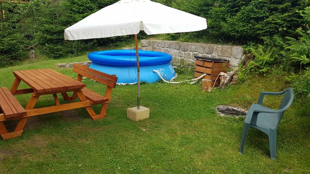Gemütliches Holzhaus mit eigenem Pool, in der Gemeinde Jetrichovice, Nationalpark Böhmische Schweiz Das Haus wird ganzjährig vermietet und bietet Platz für 8 Personen (2 Schlafzimmer). Zur Verfügung steht voll ausgestattete Küche (E-Her, Kühlschrank, Tiefkühltruhe, Kochkanne, Mikrowelle),