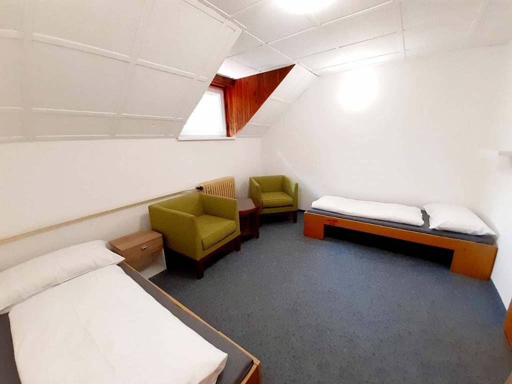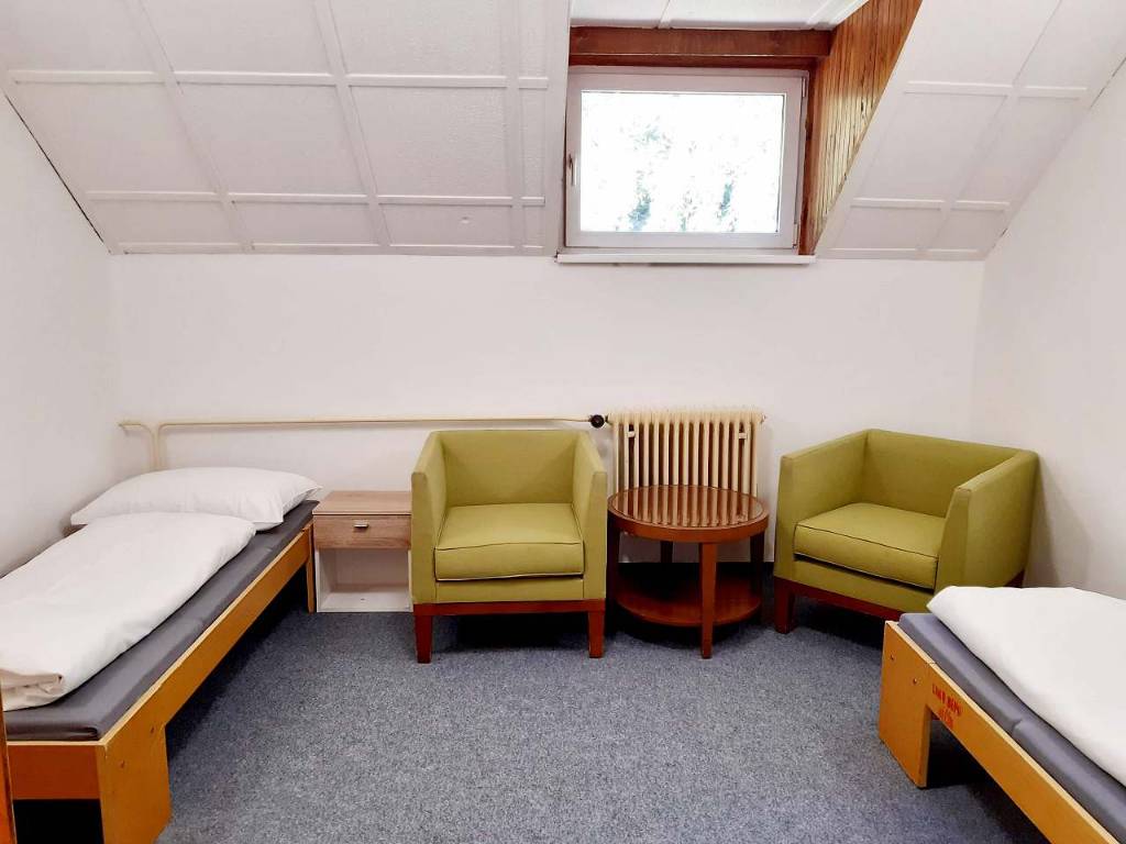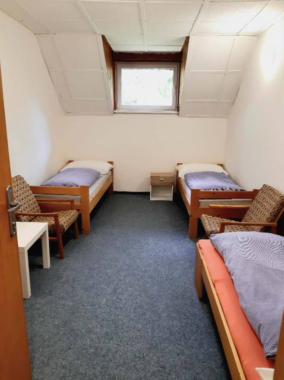 Die Unterkunft erfolgt in 6 Zimmern mit 3–5 Betten im 1. Stock des Gebäudes.