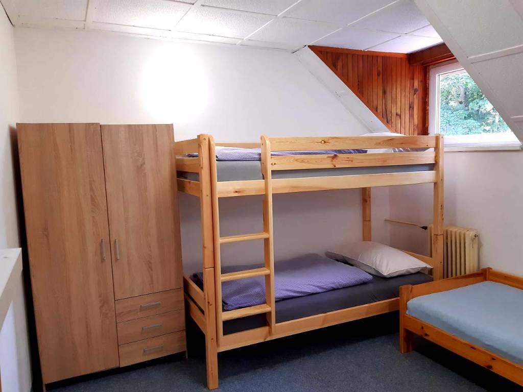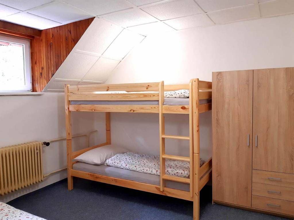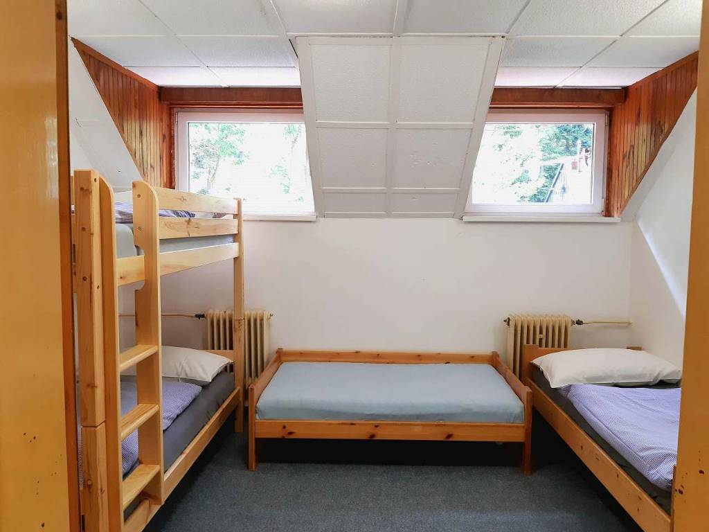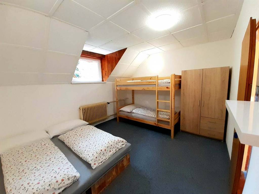 Vierbettzimmer Nr. 13 – 1x Etagenbett (90x200, 2 Betten), 1x Einzelbett (80x200), 1x Kinderbett (80x160)