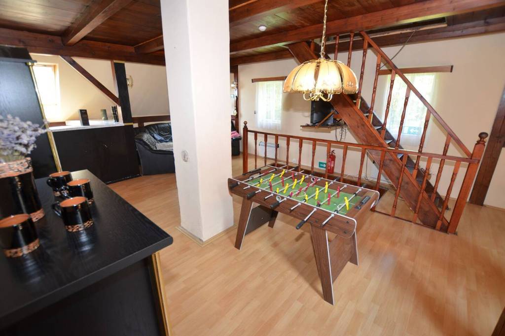 Unser Ferienhaus bietet genung Platz für max. 14 Personen. Unser Haus besteht aus 2 Stockwerken: Im Erdgeschoss: Flur mit Sitzmöglichkeit voll ausgestattete Küche einschl. Waschmaschine, Spülmaschine, Kinderstuhl 1x Schlafzimmer (5 Betten, Aufbettung, Kinderbett) 2x Bäder 2x WC (ein separat,