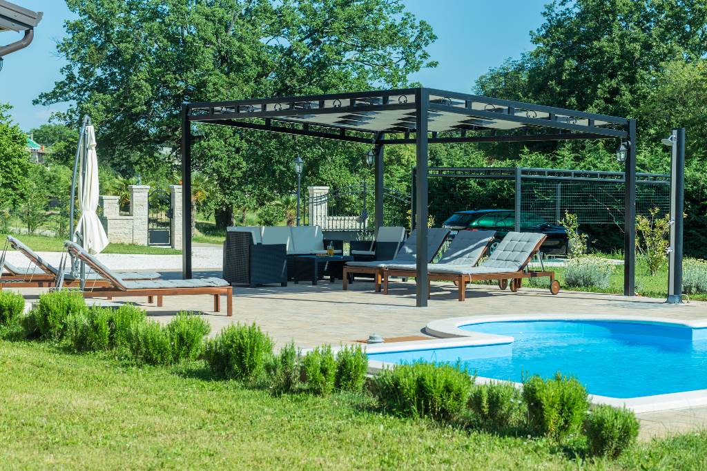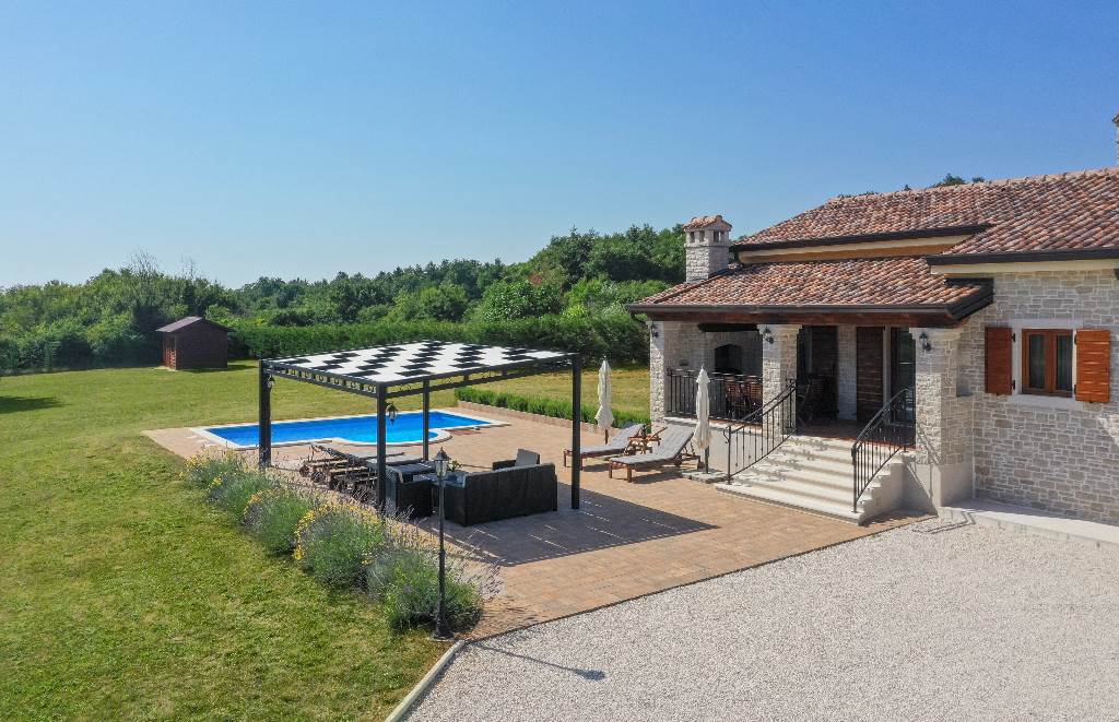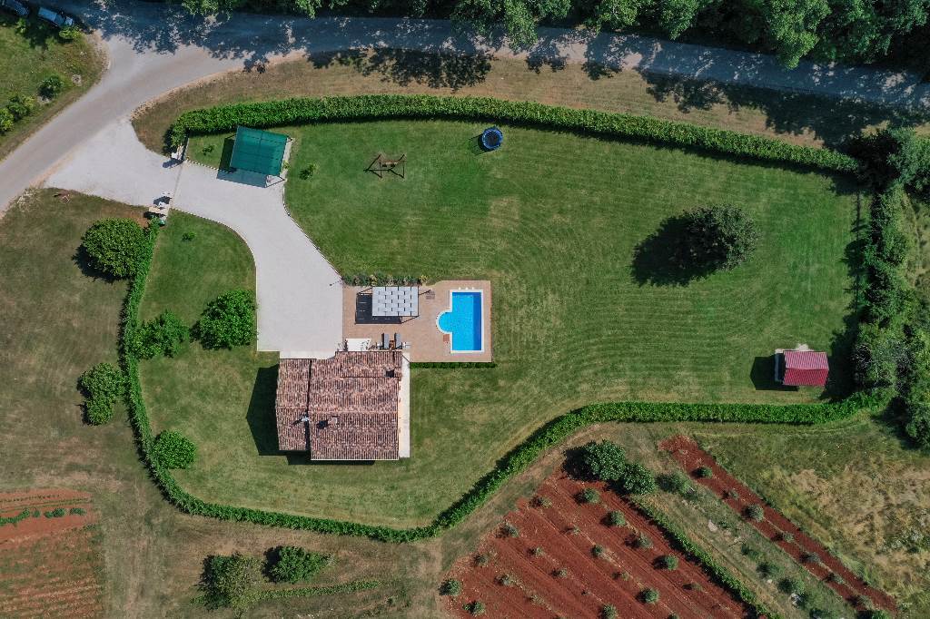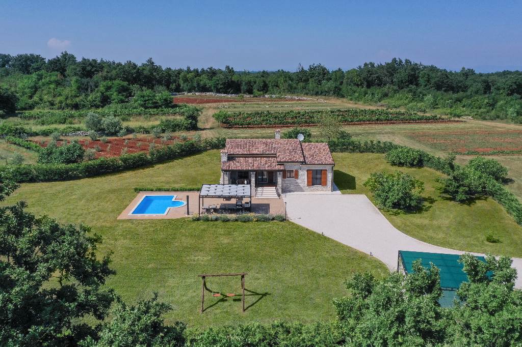 Villa liegt im Zentrum von Istrien in der Nähe von Rovinj, in einer sehr ruhigen Umwelt. Es wurde im rustikalen Stil gebaut. Die Villa ist umgeben einem eigenen großen Wiese. Die Gäste können in Ruhe mit den Vögeln zu genießen und die Blick auf den nahe gelegenen Wald, einem Weinberg und Oliv