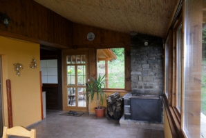 - Terrasse (verglast mit Kamin, 28 m2, Esstisch mit 9 Plätzen, Essecke, das Zimmer ist durchgänglich, Aussicht auf den Wald)