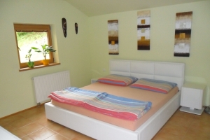 - Schlafzimmer (34 m2, 1 x EB, 1 x DB, Balkon - 5 m2, Aussicht auf den Wald)