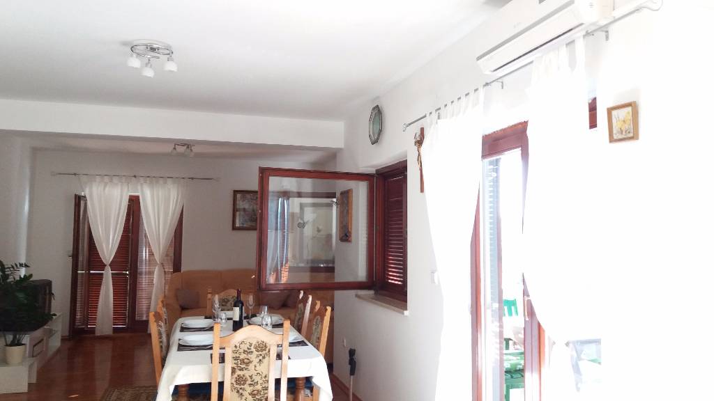Apartments Irina (4 + 2) 80m2 im ersten Stock eines Privathauses in Rovanjska, befindet sich 200 m vom Strand und verfügt über 3 Balkone, Grill und Parkplatz im Hof. Zwei Schlafzimmer, ein Badezimmer mit Bad, Wohnzimmer, Esszimmer und kuhinjom.U Wohnzimmer mit Schlafsofa . Die Küche ist mit Her