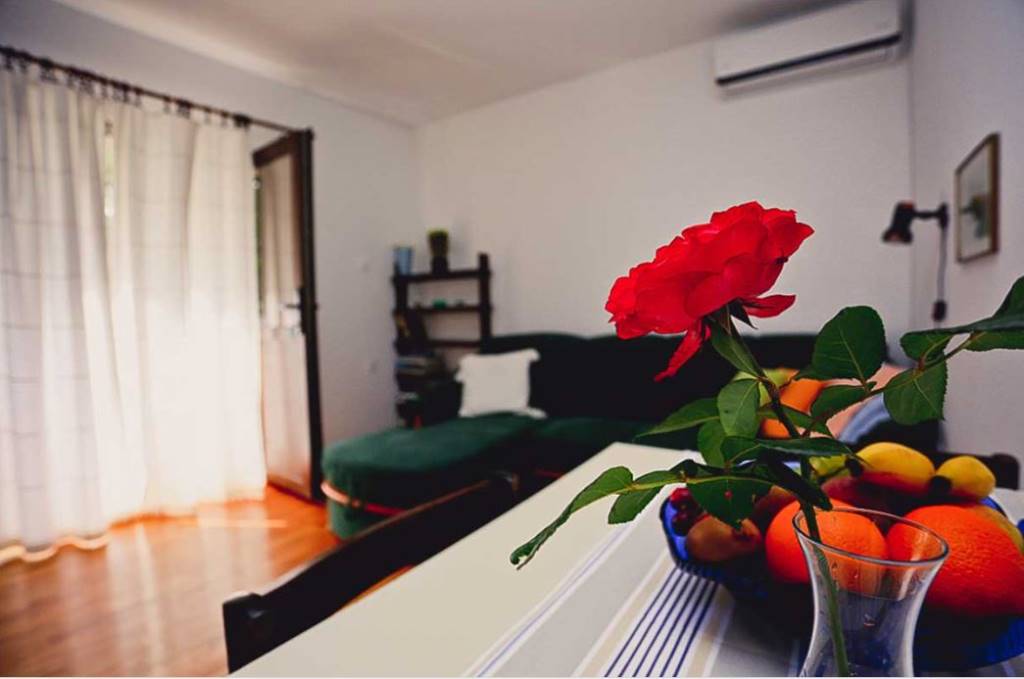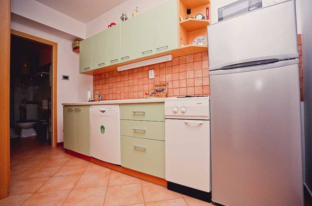 Die Oberfläche der Wohnung ist 60 m2, für 4 + 2 Personen geeignet und befindet sich am Strand, nur wenige Meter vom Meer entfernt, und besteht aus 2 Schlafzimmern, einem Wohnzimmer mit Schlafsofa für zwei Personen, einer Küche, einem Badezimmer und einer Terrasse. Die Wohnung ist mit Klimaanlage