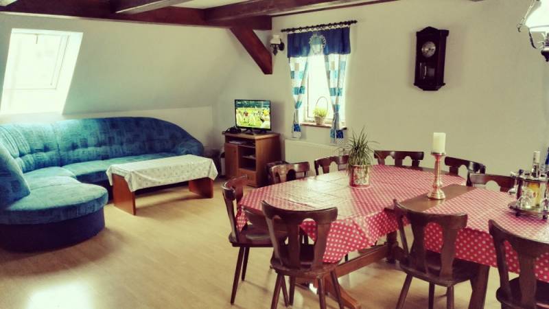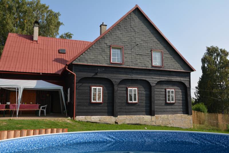 Unser Ferienhaus liegt im Herzen der Böhmischen Schweiz, in der Gemeinde Jetrichovice und bietet Unterkunft für 26 Personen in 6 Schlafzimmern und ist geeignet für grössere Gruppen, Familien mit Kindern usw. Zu dem Haus gehört ein eingezäunter Garten mit Pool, Sitzmöglichkeit, Feuerstelle, T