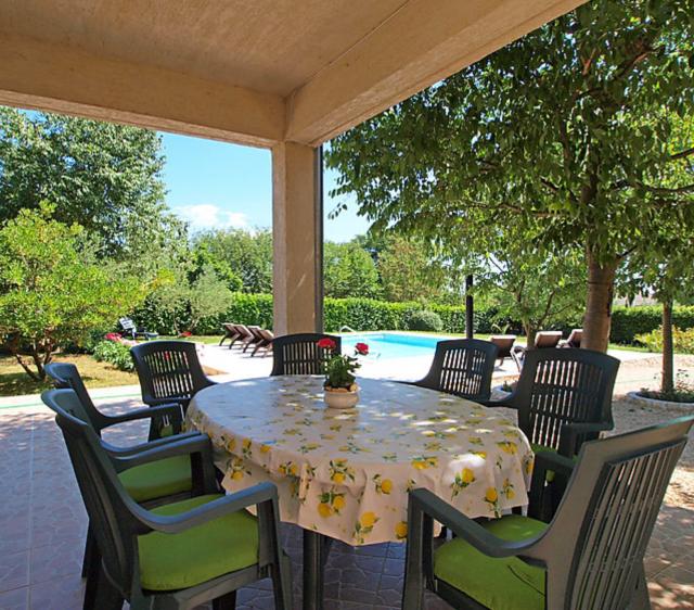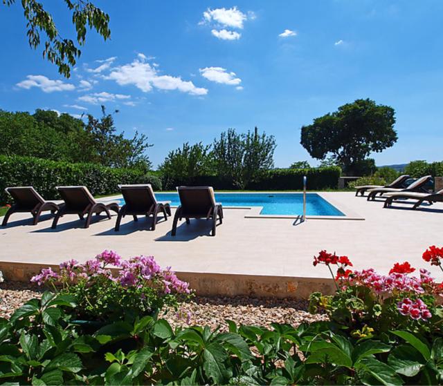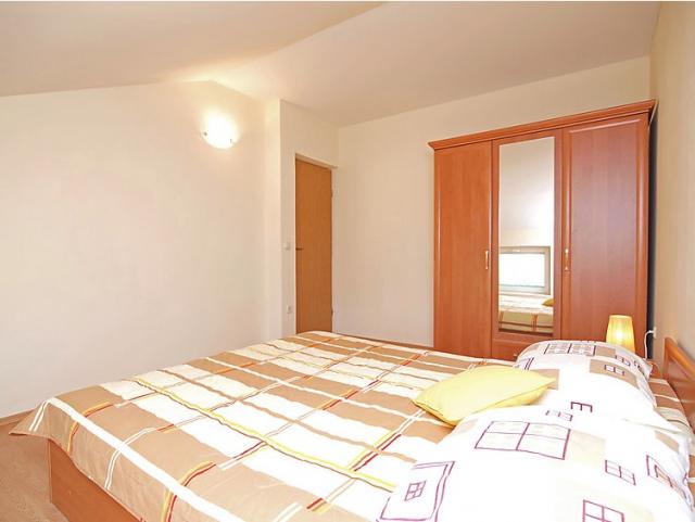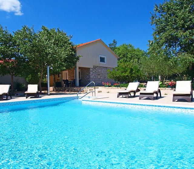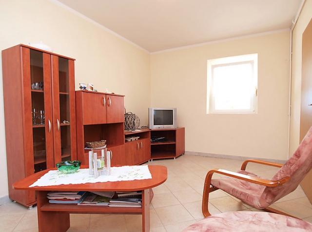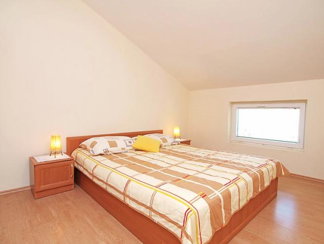 4 -sobna polovica dvojne kuće 120 m2 na 2 etaže, prema jugozapadu. Dnevni boravak s TV-om sa sat. prijemnikom (plosnatim TV ekranom). Blagovaona. Otvorena kuhinja (4 ploče za kuhanje, pećnica, perilica za suđe, mikrovalna pećnica, zamrzivač). Tuš/WC. Gornji kat: 1 soba s kosim stropom, visina stropa 145 - 250 cm s 1 franc. krevetom (160 cm, dužina 200 cm). 1 soba s kosim stropom, visina stropa 145 - 250 cm s 2 kreveta (90 cm, dužina 200 cm), TV-om. 1 soba s kosim stropom, visina stropa 145 - 250 cm s 1 krevetom (90 cm, dužina 190 cm), 1 franc. krevetom (160 cm, dužina 190 cm). Tuš/WC. Klima uređaj. Terasa 50 m2 (djelomično natkrita), terasa 50 m2. Garnitura za sjedenje, ležaljke. Pogled na bazen. Na raspolaganju: dječji krevetić (uz doplatu). Internet (wireless LAN [WLAN], besplatan). 1 kućni ljubimac / pas dozvoljen. Kuća/Residence Dvojna kuća na 2 kata. U zaseoku Kakma 8 km od centra mjesta Biograd, mirno, sunčano mjesto, 6 km od mora. Za samostalno korištenje: parcela 1'300 m2 (ograđena), bazen pravokutni (8 x 5 m, 150 cm dubok, 04.04.-17.10.) s unutarnjim stepenicama. Vanjski tuš, terasa (98 m2), roštilj. U kući: pristup internetu, perilica za rublje. Parking (za 2 automobila) uz kuću na parceli. Trgovina 300 m, restoran 8 km, šljunčana plaža 8 km, kupalište 8 km. Poznata jezera u blizini: Vransko jezero 12 km.