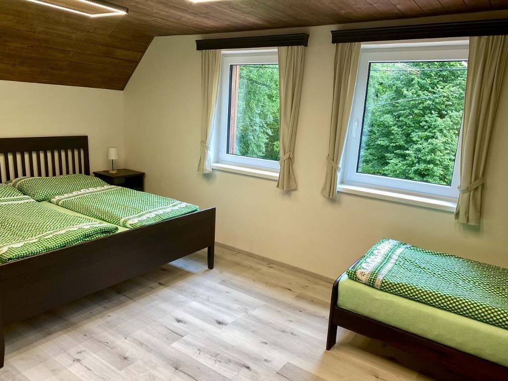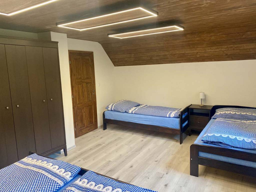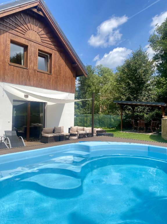 Neu erbautes Ferienhaus für 8 Personen in 2 Schlafzimmern liegt in einer ruhigen Gegend von Všemily, in der Nähe des Waldes und eines Baches. Garten, eingelassener Außenpool mit Terrasse, überdachte Pergola. In der Umgebung befinden sich attraktive Ausflugsziele und Radwege. Im nahegelegenen H