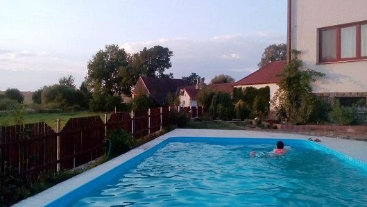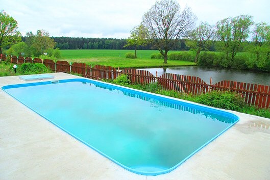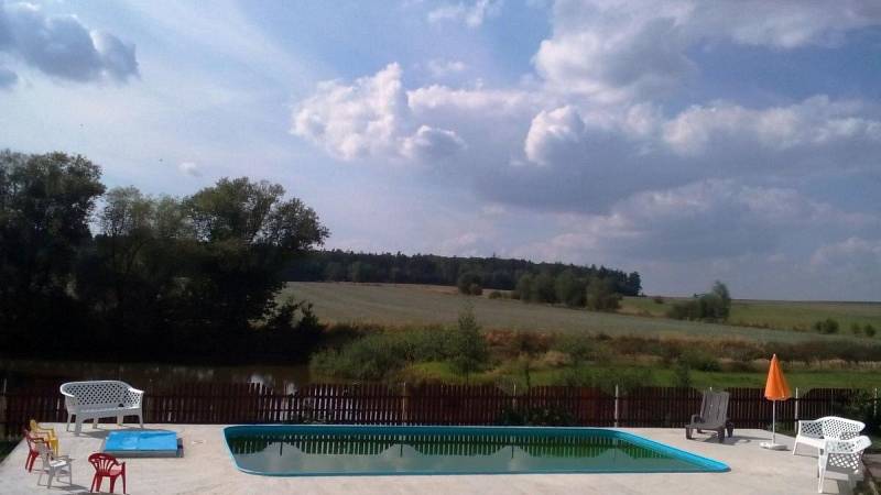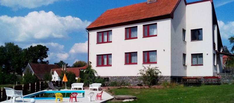 Velká rekreační vila se zapuštěným bazénem se slanou vodou a protiproudem, 6 km od Malšic a 15 km jižně od Tábora v jižních Čechách.