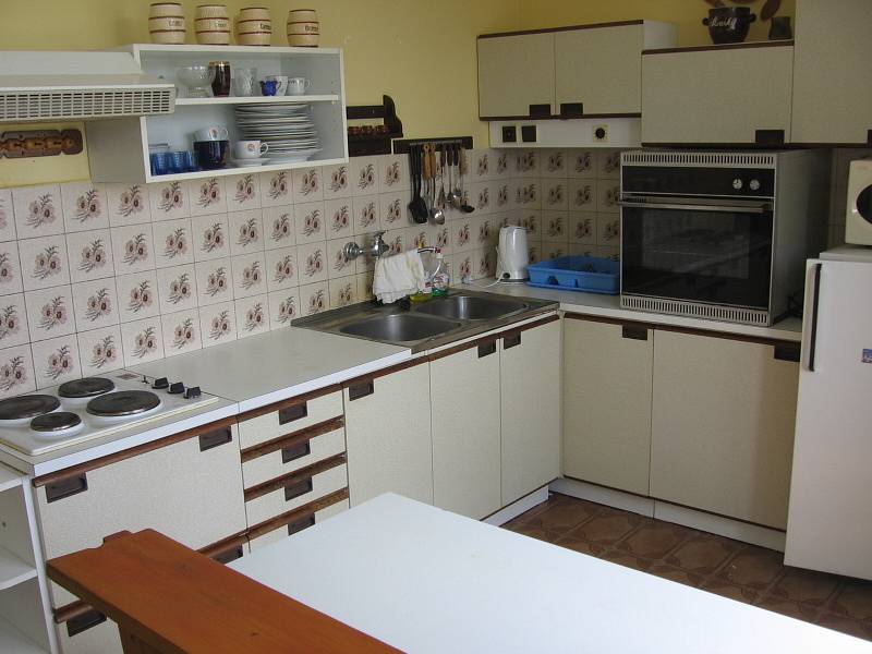 2x vybavená kuchyně (2x el. deska, 2x el. trouba, 3x lednička, 2x mikrovlnná trouba, 2x rychlovarná konvice) každá s posezením, 2x obývací pokoj, 7 ložnic (3/2, 2/3, 2/4), 2x koupelna s vanou, 2 umyvadly a WC, 1x samostatné WC,