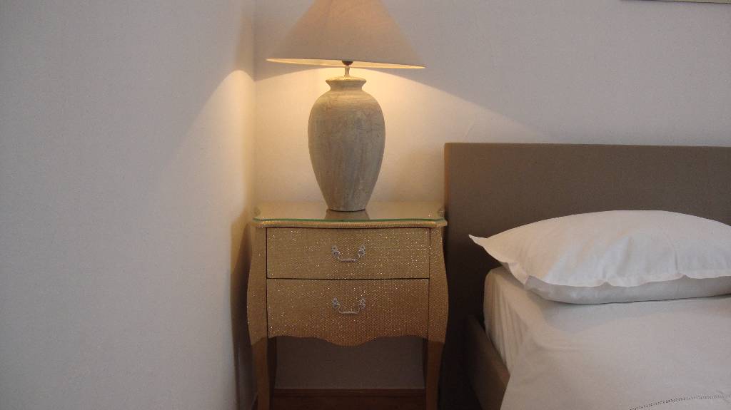 Apartment erster Stock, Zimmer mit Doppelbett + Klimageräte,Wohnkueche mit DoppelZusatzbett + Klimageräte, Badezimmer mit Badewanne und WC, Terrasse ( mit Eingang fuer A5,nur den Durchgang),TV,SAT-TV, SMART TV, WIFI, Heizung moeglich, 2×Ventilator, Parkplatz,Sondereingang , Uhr Radio-Wecker; D