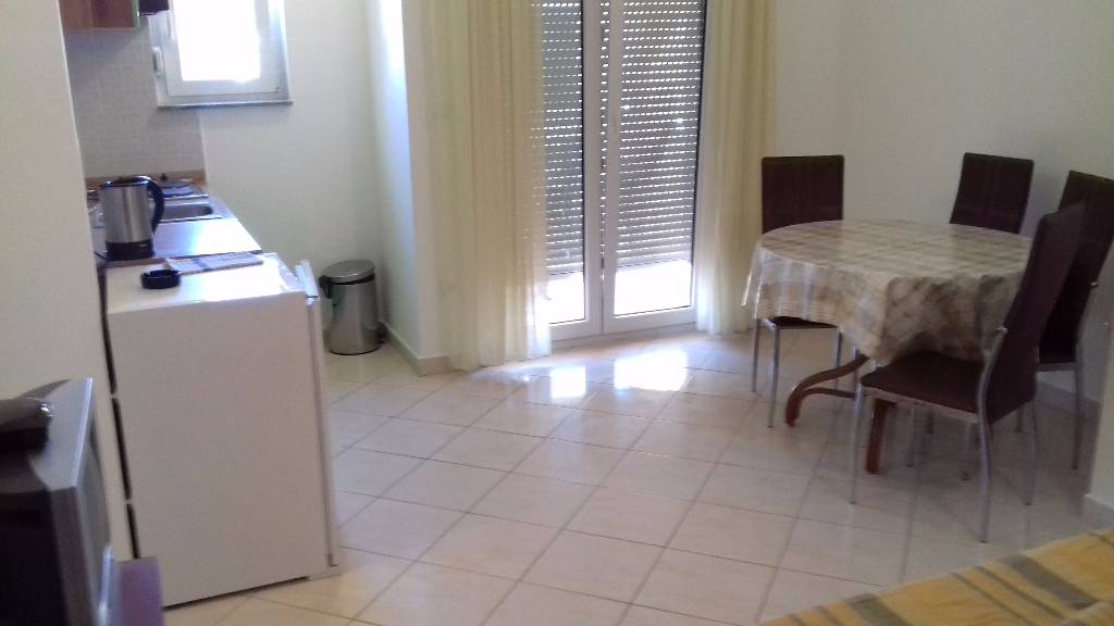 Die Wohnung verfügt über ein Schlafzimmer, Wohnzimmer mit Küche und Schlafcouch für zwei Personen, Bad mit Dusche, Terrasse, Parkplatz und Grillplatz befinden sich im Hof. WiFI, Klimaanlage und Kurtaxe sind im Preis inbegriffen