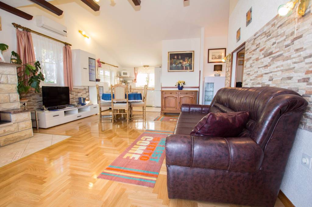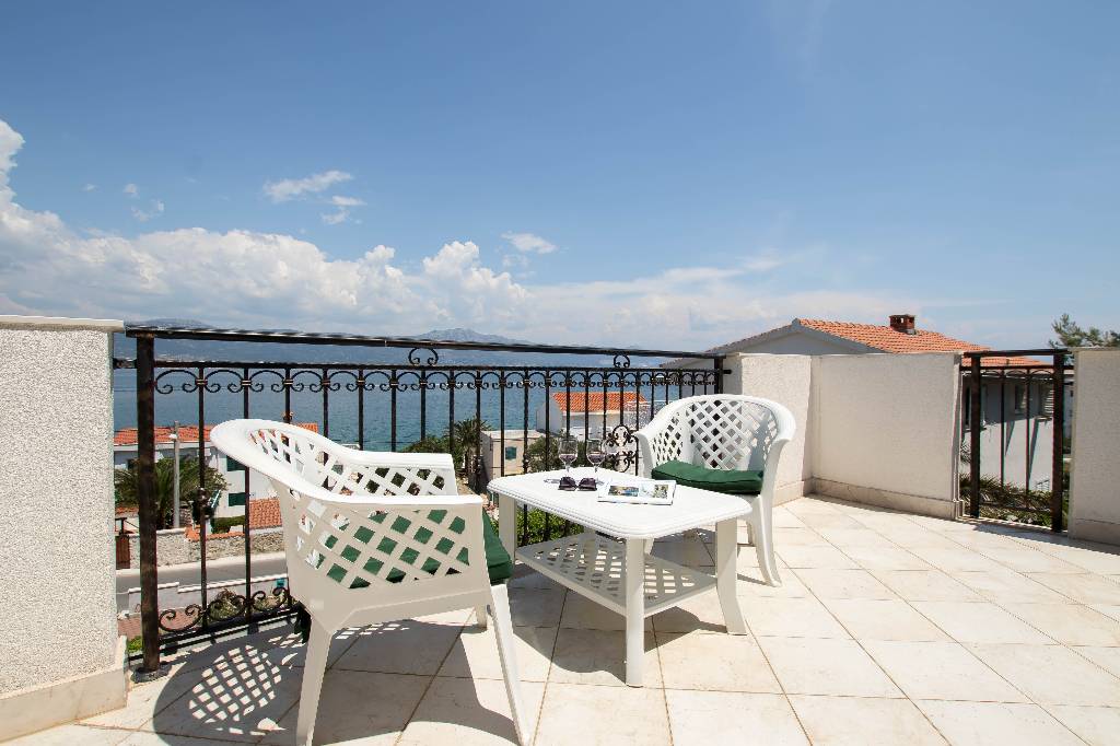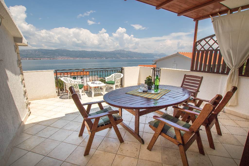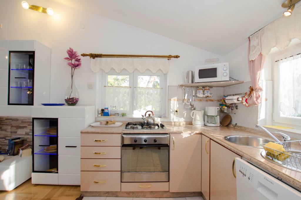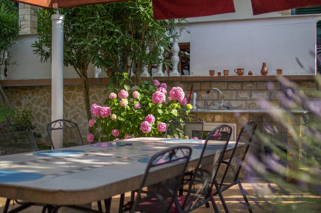 Der Komplex der Apartments ist auf der Insel Ciovo, eine kleine Insel vor der Küste verbunden mit der Stadt Trogir durch eine Zugbrücke. Es ist ein modernes Haus, bestehend aus einem Erdgeschoss und zwei Obergeschosse, durch das Grün eines gepflegten Gartens umgeben. Es ist in einem kleinen Feri
