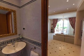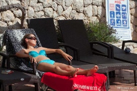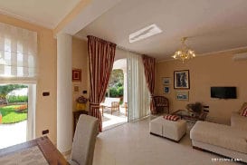 Diese ist eine sehr schöne und exklusive Ferienwohnung, die sich im Villas Erdgeschoss befindet und ist 85q/m gross.. Die Ferienwohnung ist mit zwei Doppelzimmern, zwei Badezimmern, Toilette, Wohnzimmer, und Küche ausgestattet. Die Terrase hat direkten Ausgang zum Swimmingpool und Gartenfläche. D
