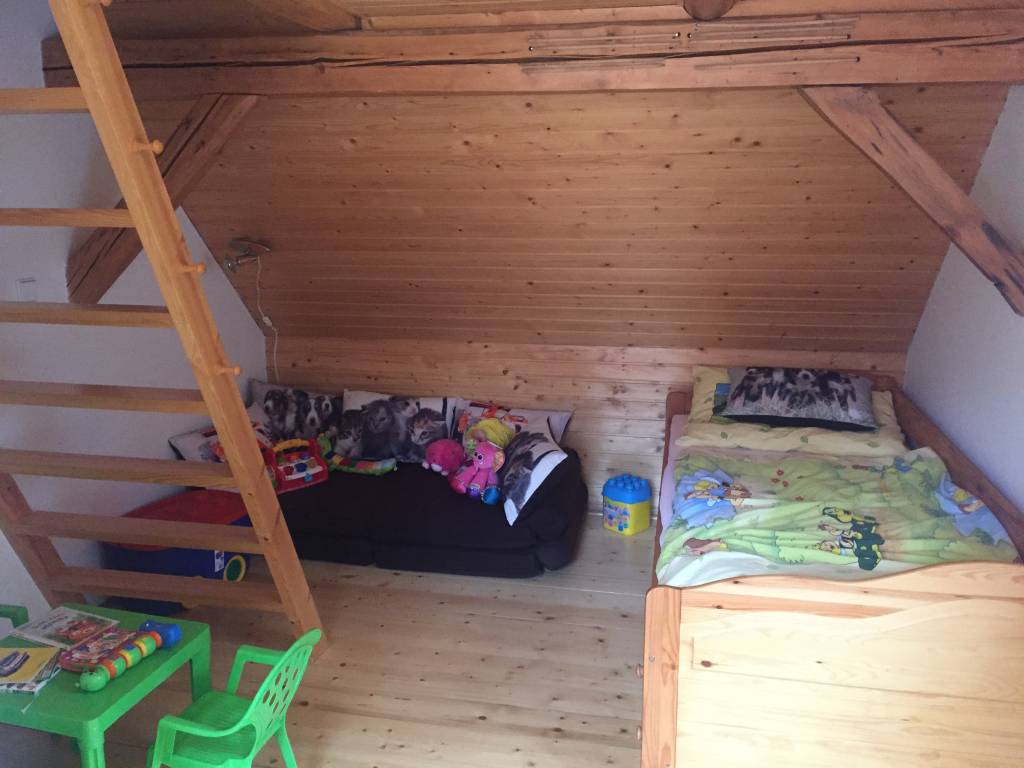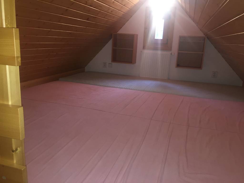 Des Weiteren kommt man über eine steile Holztreppe aus einem der Schlafzimmer ins Dachgeschoss, wo auf dem Bodem zusätzliche Matratzen liegen und als mögliche Aufbettung dienen (Abenteuer für Kinder).... In diesem Fall sind aber eigene Schlafsäcke erforderlich.