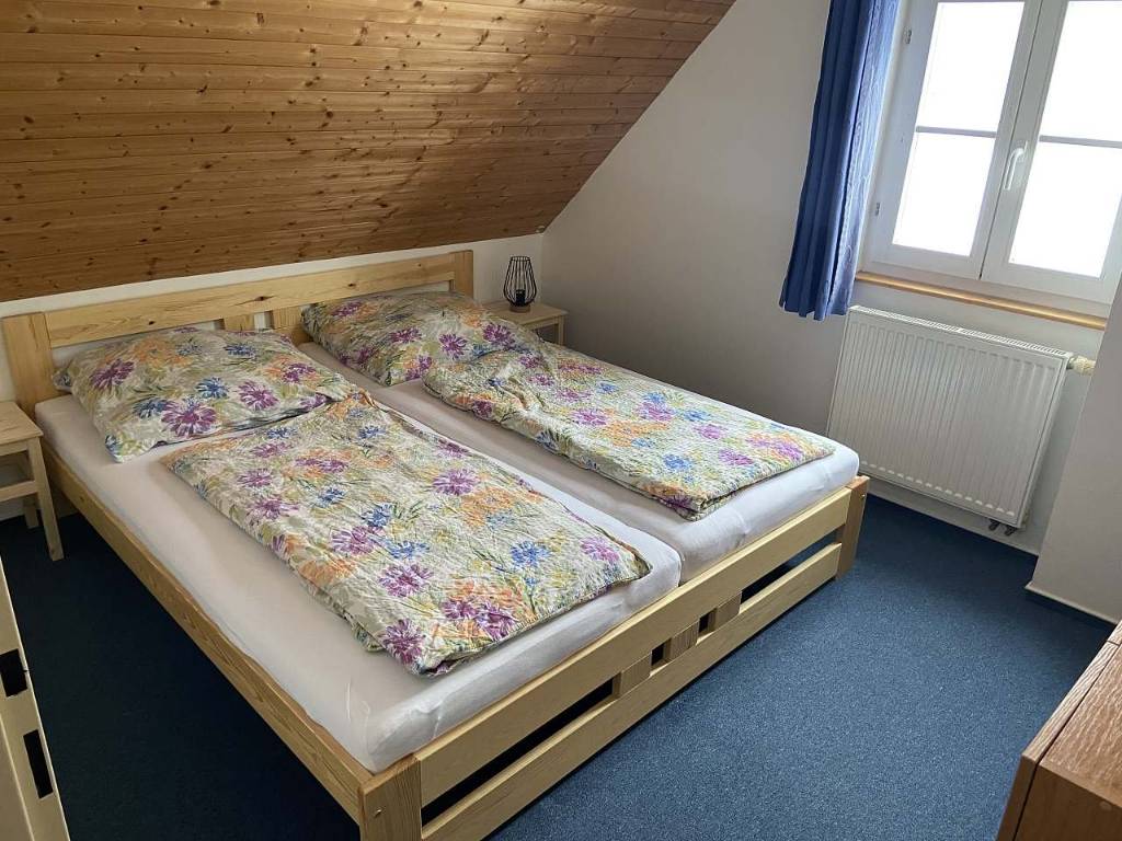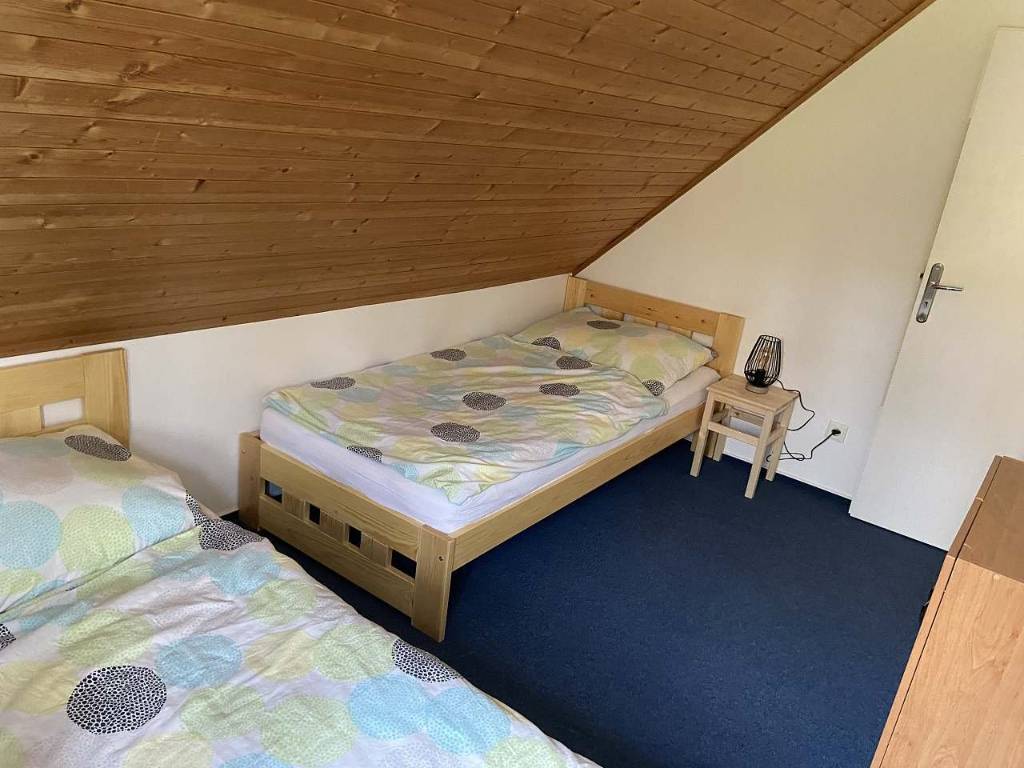 Im Obergeschoss befinden sich drei separate Schlafzimmer, jeweils mit zwei Betten. Ein Kinderbett kann nach vorheriger Absprache bereitgestellt werden.