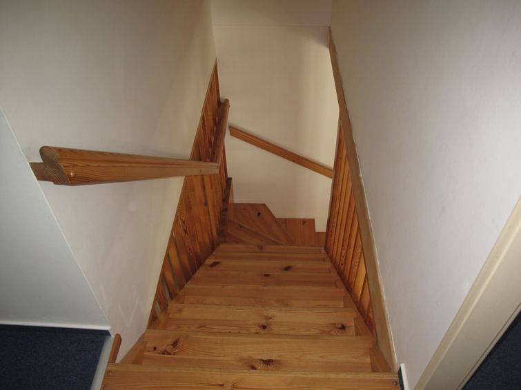 Im Obergeschoss gibt es ein Badezimmer mit Badewanne, WC und Waschmaschine; hier befindet sich auch der Gasboiler.