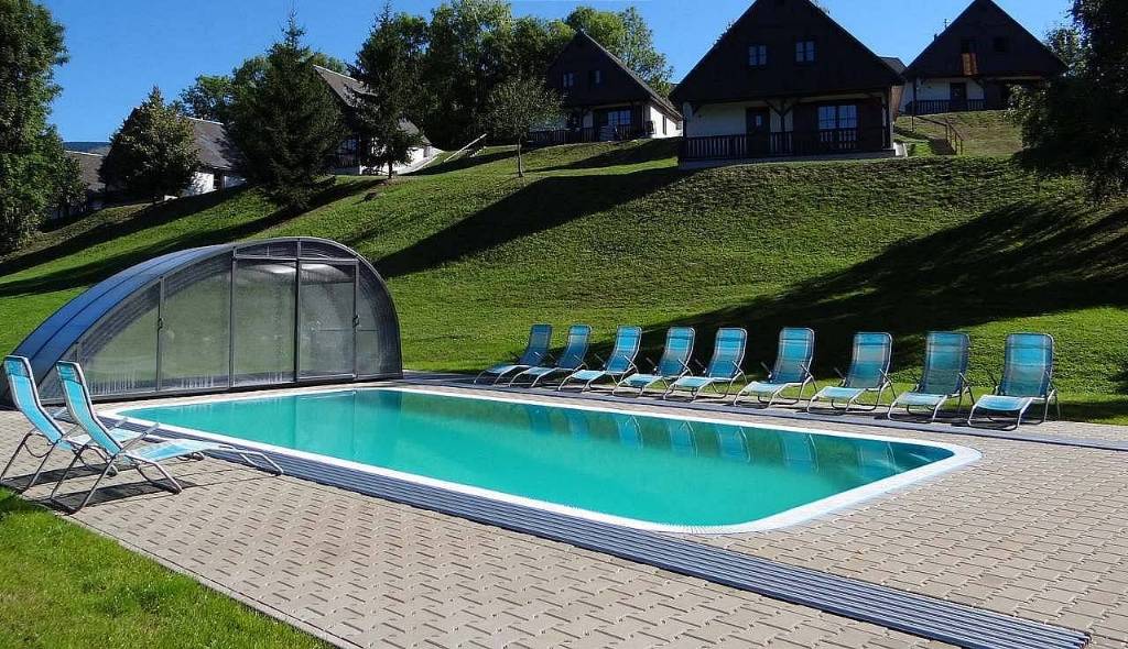 Dieses Ferienhaus ist Teil des Ferienareals Happy Hill, wo Ihnen ein überdachter Pool (9 × 4 m, Tiefe 120 cm, geöffnet vom 01.06. bis 26.09. täglich von 9:00 bis 20:00 Uhr), ein Trampolin sowie ein Kinderspielplatz zur Verfügung stehen. Zur Hütte gehört außerdem ein eigener, nicht eingezäun