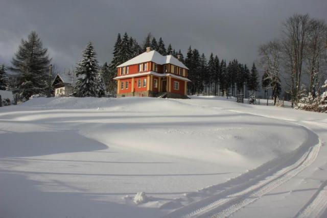 Unsere wunderschöne Villa liegt in unmittelbarer Nähe von Skiarealen und Liopen im Erzgebirge. Das nächste Skiareal Plešivec ist nur 200m entfernt, gepflegte Loipen direkt am Haus (auch mit Abendbeleuchtung). Das eingezäunte 3000m2 grosse Grundstück schliesst an den neu erbauten Waldpark